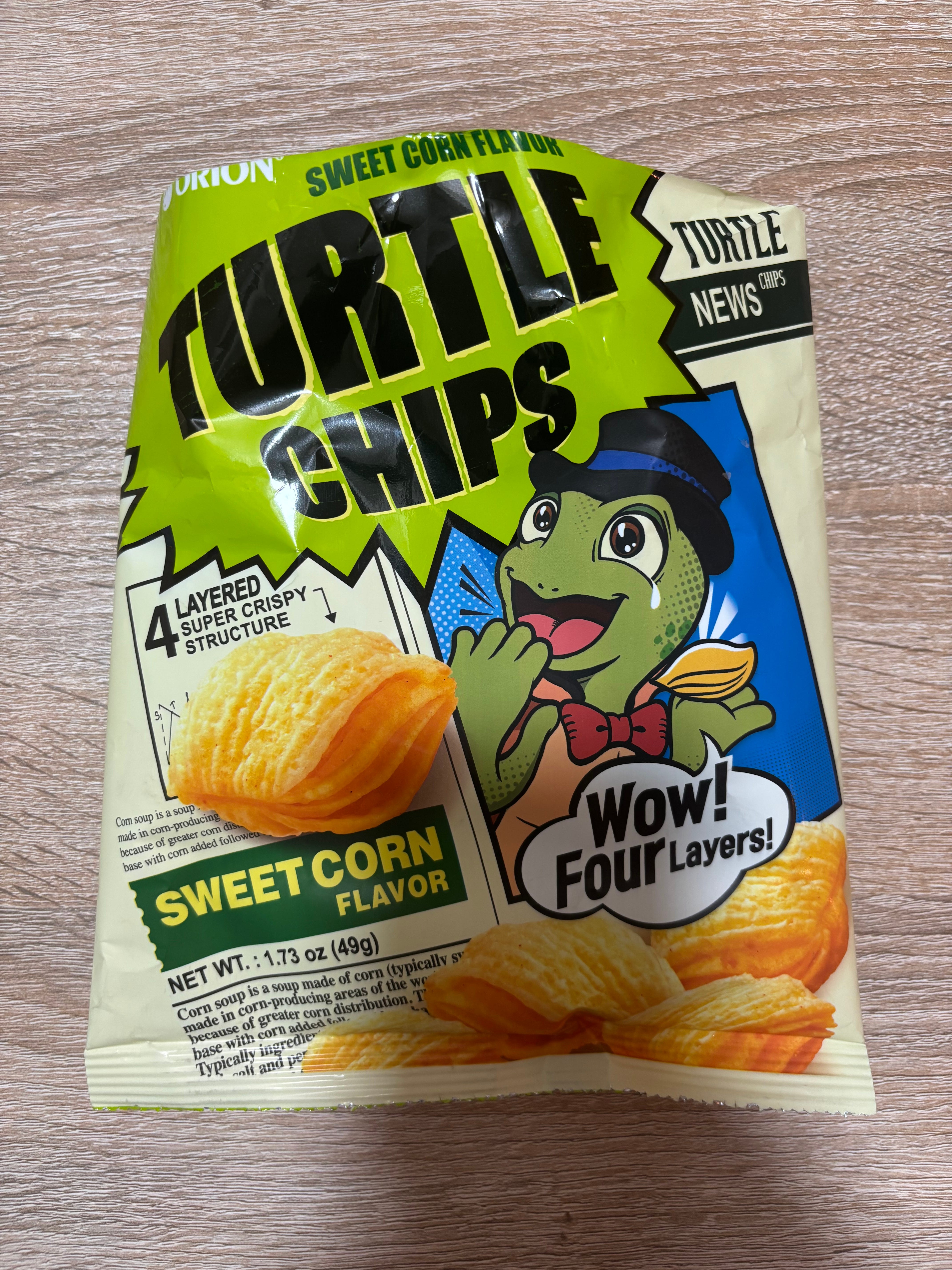 Sweetcorn Turtle Chips are a nice idea ruined—an Ed Miliband, perhaps. I strongly urge South Korea to think about the salt-based snack potential of this fantastic construction. If Turtle Chips would focus on delivery, stick to what works and stop trying to be clever, then they will find far more success and support.
